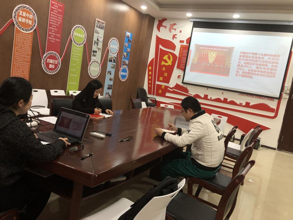2019年11月21日14:30,三亿教工党支部于北校区三亿会议室开展支部书记上党课,教工党支部书记徐青为支部成员做了党的十九届四中全会精神专题学习。徐青从十九届四中全会中国共产党第十九届中央委员会第四次全体会议公报内容、中共中央关于坚持和完善中国特色社会主义制度、推进国家治理体系和治理能力现代化若干重大问题的决定说明,以及确定会议确定在100件大事为支部成员作讲解。中国共产党第十九届中央委员会第四次全体会议通过《中国共产党第十九届中央委员会第四次全体会议公报》,内容主要包括中国特色社会主义制度和国家治理体系的“3个判断”、“13个方面的显著优势”,坚持和完善中国特色社会主义制度、推进国家治理体系和治理能力现代化的总体目标、坚持和完善的13个制度体系,强调了1项重大战略任务,公布了2项人事信息。《中共中央关于坚持和完善中国特色社会主义制度、推进国家治理体系和治理能力现代化若干重大问题的决定》起草情况向全会作说明,决定稿起草背景和考虑是从党和国家事业发展的全局和长远出发,中央政治局决定这次中央全会专题研究坚持和完善中国特色社会主义制度、推进国家治理体系和治理能力现代化问题,为我们实现“两个一百年”奋斗目标的重大任务;也是把新时代改革开放推向前进的根本要求。和应对风险挑战、赢得主动的有力保证。坚持和完善党的领导制度体系、人民当家作主制度体系、中国特色社会主义法治体系、中国特色社会主义行政体制、社会主义基本经济制度、统筹城乡的民生保障制度、共建共治共享的社会治理制度、党对人民军队的绝对领导制度、“一国两制”制度体系、坚持和完善独立自主的和平外交政策方面的100件大事做出努力。